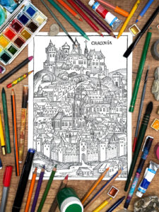Reprodukcja została przygotowana i wykadrowana specjalnie z myślą o kolorowaniu i twórczej pracy z detalem. Grafika została starannie opracowana, aby oczyścić ją z przypadkowych zniekształceń i wzmocnić czytelność linii, co pozwala skupić się na formie i strukturze przedstawienia. Każdy element kompozycji może stać się polem do własnych eksperymentów z kolorem i nastrojem.
