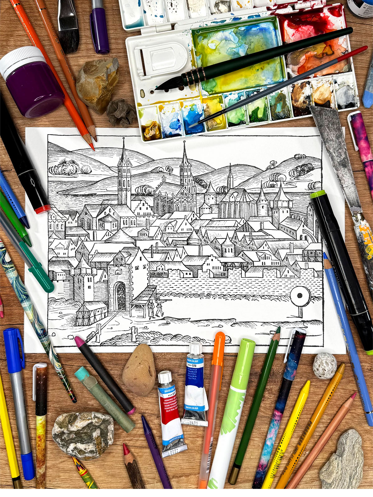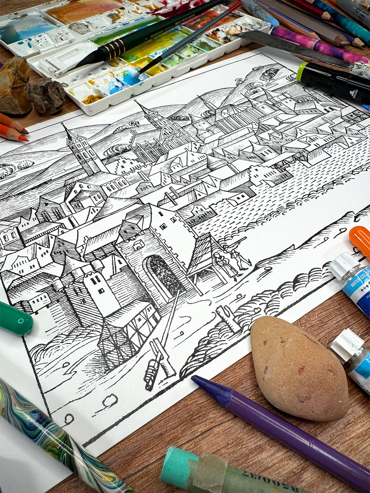 Dzięki temu możesz spojrzeć na Herbipolis z nowej perspektywy – nadając tej XV-wiecznej wizji miasta indywidualny charakter i tworząc osobiste spotkanie z historią, zapisane we współczesnej palecie barw.